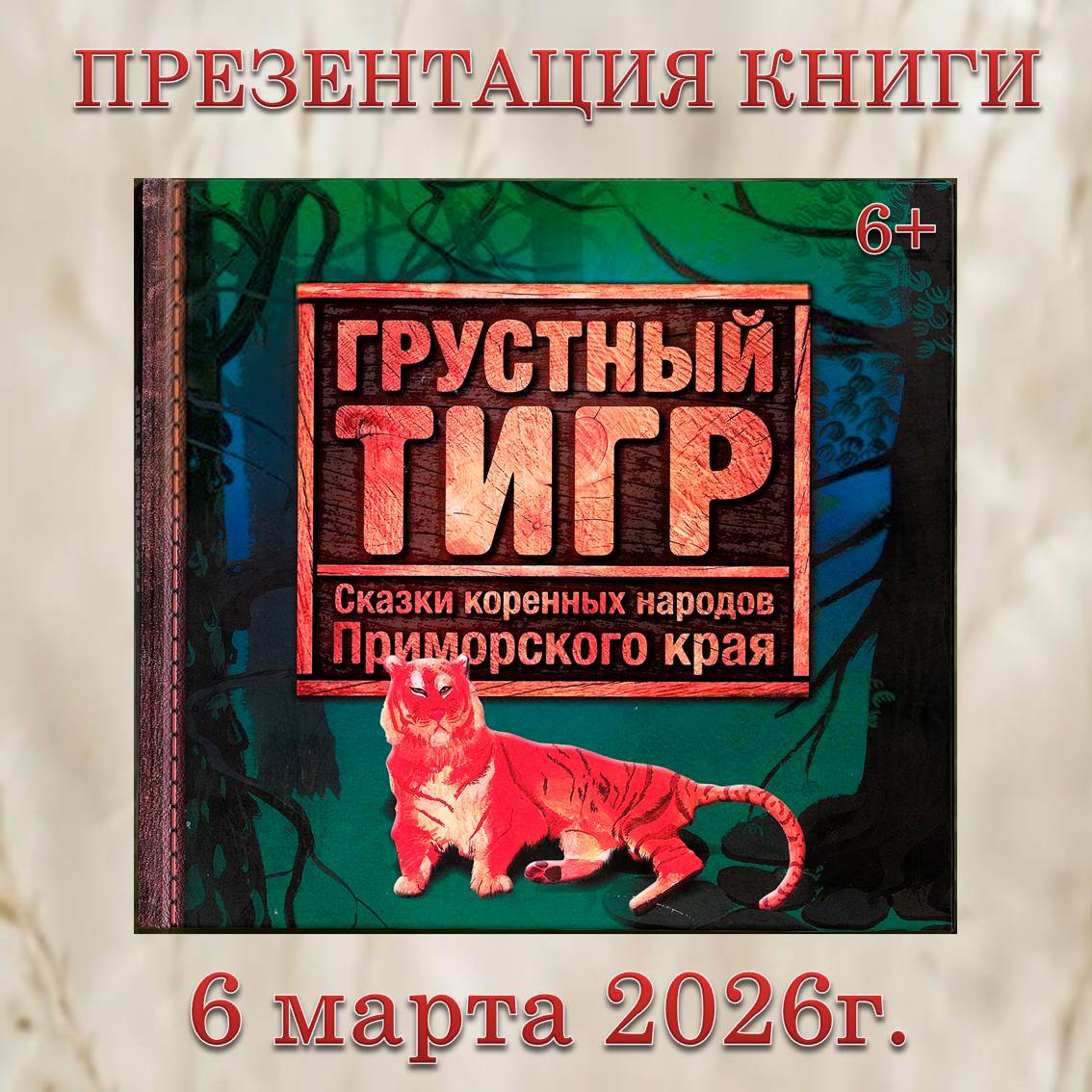 Ждем юных читателей и их родителей на презентацию книги «Грустный тигр» 6 марта в: