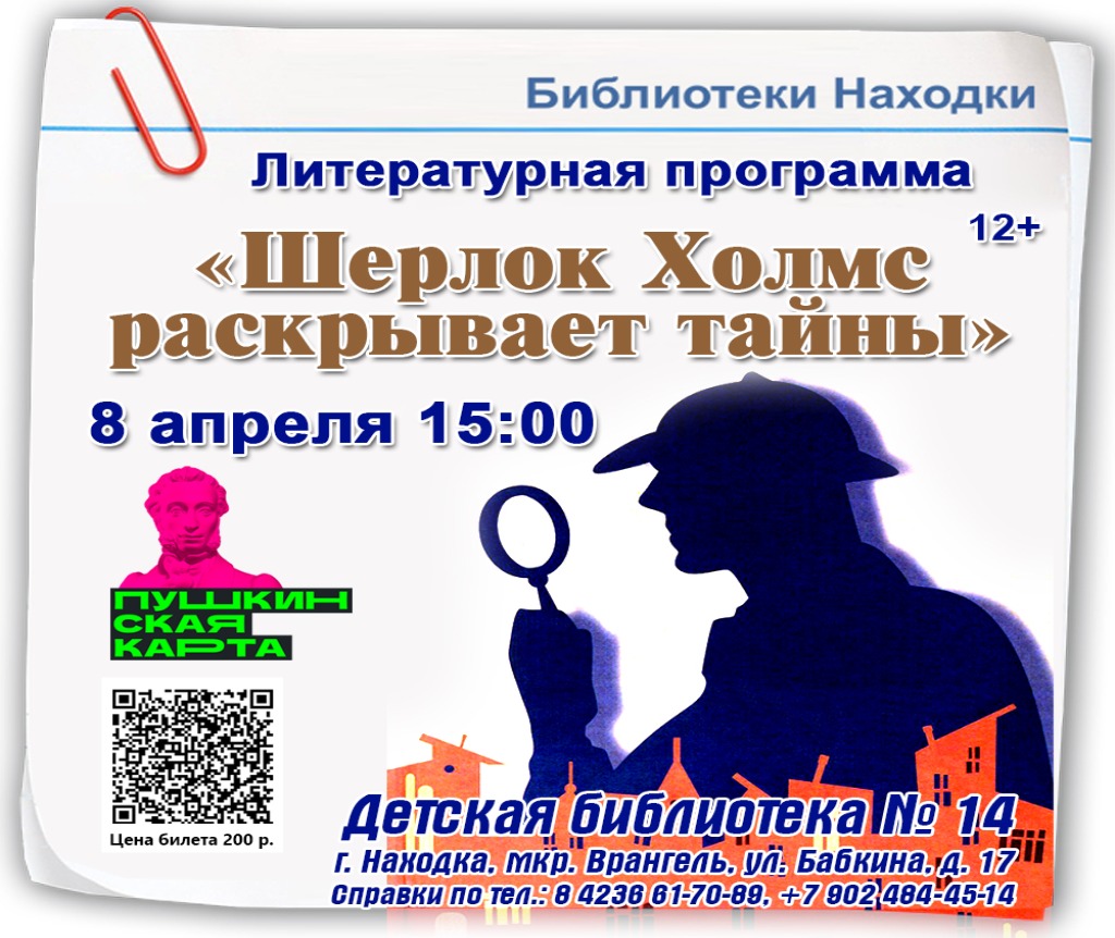 Мероприятие состоится 8 апреля в 15:00  в Детской библиотеке № 14, город Находка, мкр. Врангель, ул. Бабкина, д. 17. Возрастная категория 12+