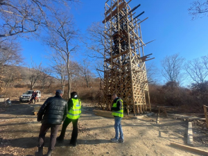 Параллельно идёт подготовка подъёма к «Чайной хижине» — будущему месту отдыха и смотровой площадке. Она находится на самой верхней точке. Из-за сложного рельефа на объекте на «Тропе осьминога» строят временный фуникулёр. Он позволит доставлять тяжёлые материалы на верхние участки без риска и задержек. Сами материалы уже подготовлены и лежат на складе в районе бухты Отрады. Здесь же обрабатывают древесину для настилов. Также на складе временно хранится покрытие для «Языка дракона» — одной из самых ожидаемых точек проекта. Плиты будут установлены в ближайшее время.