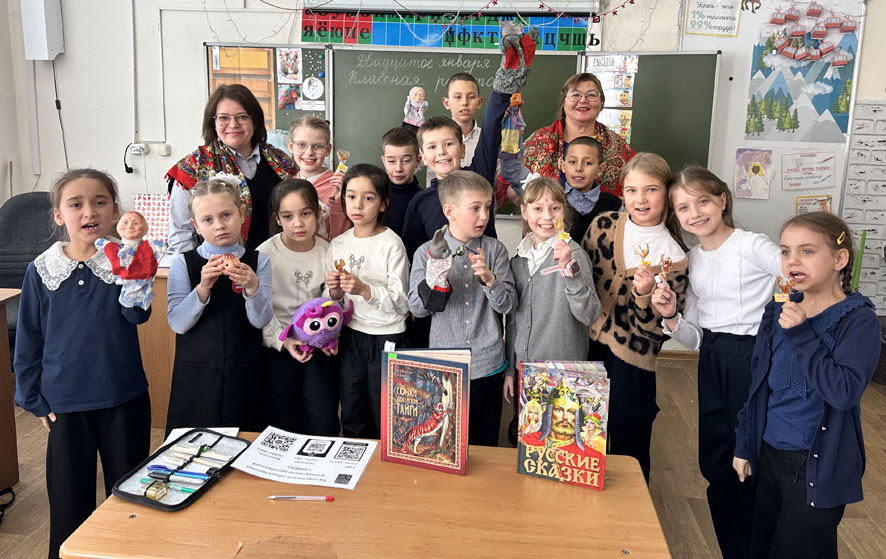 На предыдущих занятиях участники проекта вспоминали русские народные сказки, слушали сказания коренных народов Приморья, играли небольшие роли в импровизированных кукольных спектаклях, создавали славянскую обережную куклу-мотанку «Рождественская коза». А чтобы закрепить познанное, отвечали на вопросы викторин и получали сладкие призы.