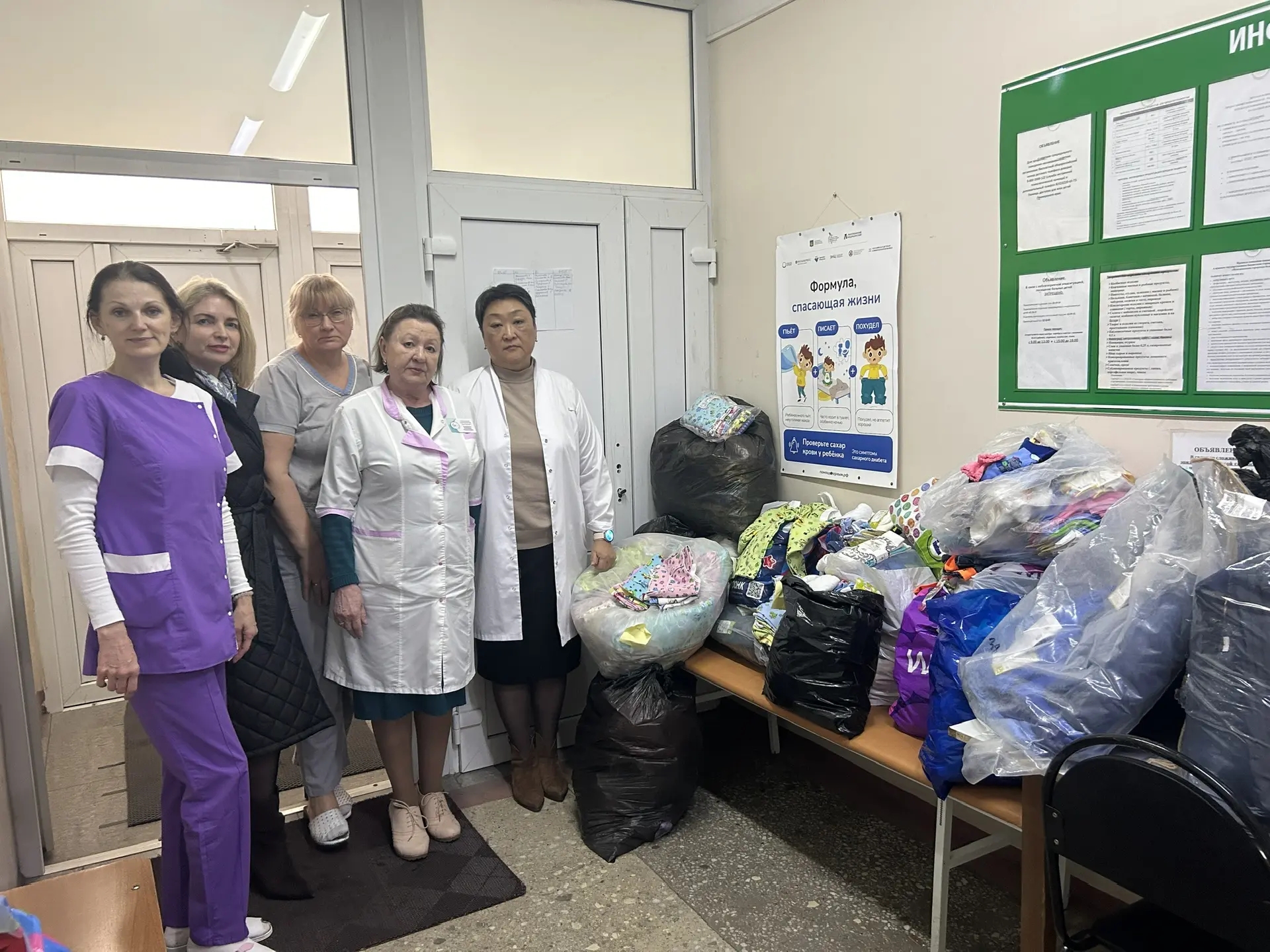 Наборы вещей распределены между родильным домом и детским стационаром. Запас новой одежды в больнице позволяет медицинскому персоналу оперативно решать бытовые вопросы подопечных, концентрируясь на главном — лечении маленьких пациентов.