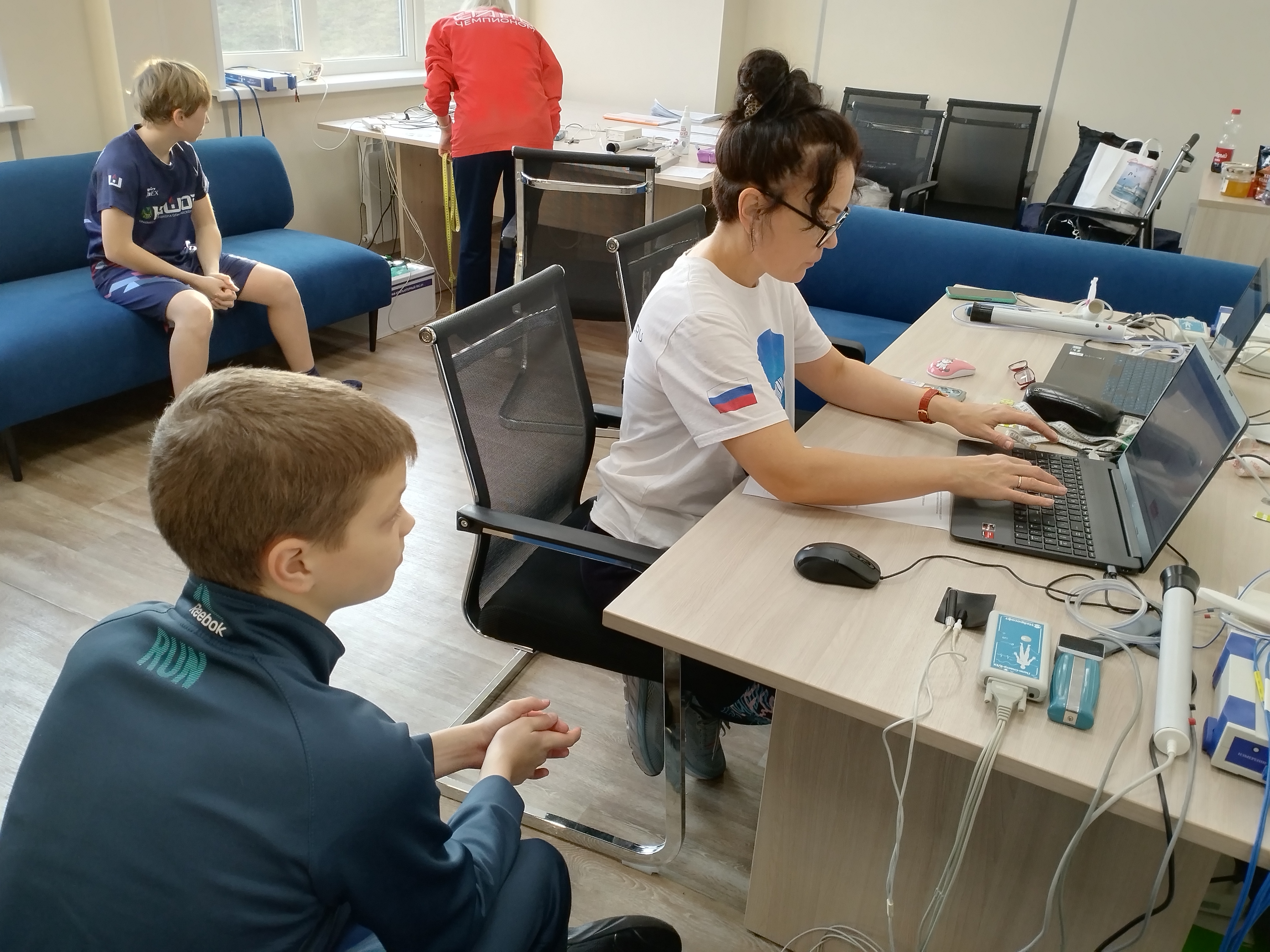 Далее — функциональное обследование. Оно состоит из четырёх этапов: определение склонности и подходящих физических нагрузок для ребёнка, оценка ёмкости лёгких, измерение артериального давления. Специалисты в трёх уровнях проверяют вариабельность работы сердечной мышцы, ритмичность подачи крови при нагрузках, без нагрузок. Затем переходят к психотестам. Они включают в себя ряд тестов, которые определяют сенсомоторику, скорость реакции и выносливость организма. Есть такой интересный тест, когда ребёнок ровно минуту должен стучать карандашом, где проверяется его утомляемость и периодичность. Проводят спортивное тестирование, включающее элементы ГТО, такие сложные упражнения, как выворачивание своих рук назад, продолжительность стояния на одной ноге, подпрыгивание с одновременным разворотом на 360 градусов. В итоге информация о тестируемом собирается в компьютер, который через 10 минут выдаёт уникальное заключение.