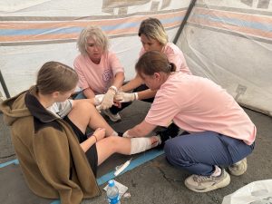 Участники Олимпиады продемонстрировали ключевые навыки оказания первой помощи в различных ситуациях, требующих быстрой и уверенной реакции. Также на фестивальных площадках, разместившихся на территории колледжа, все желающие могли усовершенствовать навыки сердечно-легочной реанимации, подкожной инъекции, обработки ран, ознакомиться с другими важными практиками.